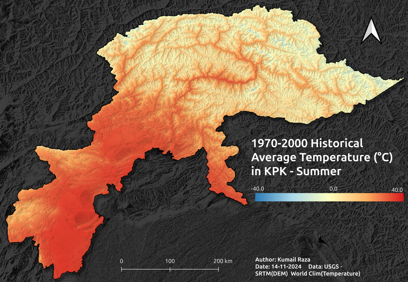 Explore temperature, precipitation, and solar radiation in Pakistan’s Northern province using QGIS.